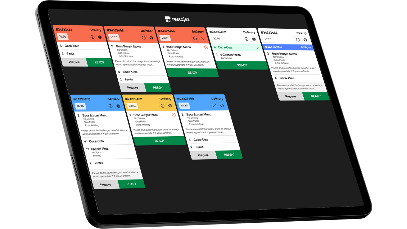 Seamless Integration – orders flow directly into Restajet POS & kitchen display
